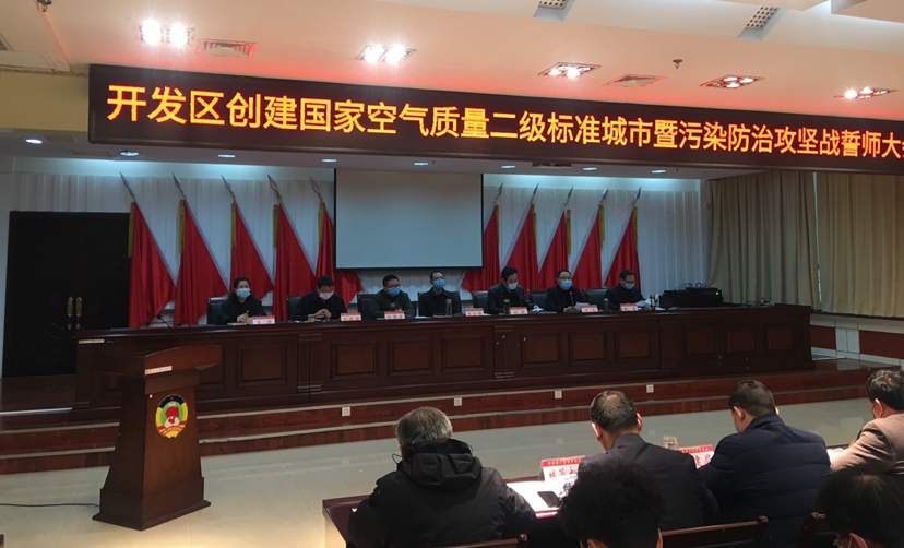 3月13日,開發(fā)區(qū)召開創(chuàng)建國(guó)家空氣質(zhì)量二級(jí)標(biāo)準(zhǔn)城市暨污染防治攻堅(jiān)戰(zhàn)誓師大會(huì)。開發(fā)區(qū)黨委書記王文峰出席會(huì)議并講話。開發(fā)區(qū)管委會(huì)主任劉濤主持會(huì)議。開發(fā)區(qū)領(lǐng)導(dǎo)楊國(guó)建、于杰、趙愚、王靜及市公安局太昊路分局政委劉振國(guó)參加會(huì)議。