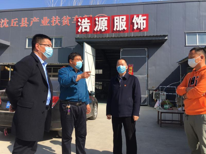 為貫徹落實(shí)上級(jí)檢察機(jī)關(guān)疫情防控期間積極服務(wù)保障復(fù)工復(fù)產(chǎn)的有關(guān)精神,保障疫情防控與脫貧攻堅(jiān)工作兩手抓、兩不誤,近日,沈丘縣人民檢察院黨組書記、檢察長(zhǎng)李世龍率隊(duì)深入到大邢莊鎮(zhèn)宋莊、清涼寺、西李莊三個(gè)扶貧車間走訪調(diào)研,查看疫情防控措施、復(fù)工復(fù)產(chǎn)等情況,詳細(xì)了解并積極解決企業(yè)復(fù)工復(fù)產(chǎn)中存在的困難及訴求,向企業(yè)贈(zèng)送一批口罩、消毒液等防疫物資。