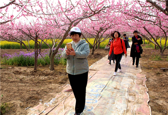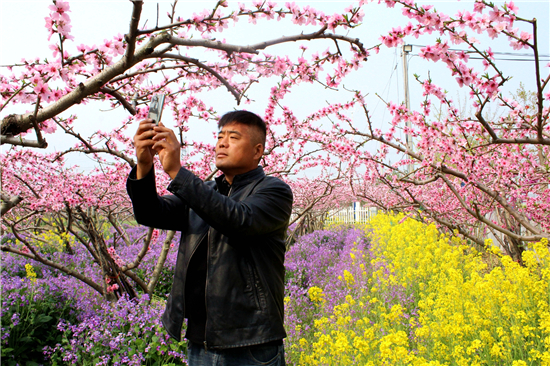 “老鐵們,今年桃花節(jié),因受疫情影響,是網(wǎng)上舉辦的,喜歡看黃橋桃花的網(wǎng)友,不要遺憾,我是您的忠實(shí)老鐵,每天會(huì)準(zhǔn)時(shí)給您分享桃花節(jié)的美景圖片及視頻,讓您足不出戶觀賞到萬畝桃園桃花盛開的美景。”3月22日,在西華縣潁河灣生態(tài)采摘園,網(wǎng)紅“西華桃子哥”和合盛正在拍攝桃園美景,一邊通過抖音、快手、微信群向網(wǎng)友拍攝上傳桃花盛開的視頻、圖片等美景,一邊樂此不疲地口中念念有詞道。