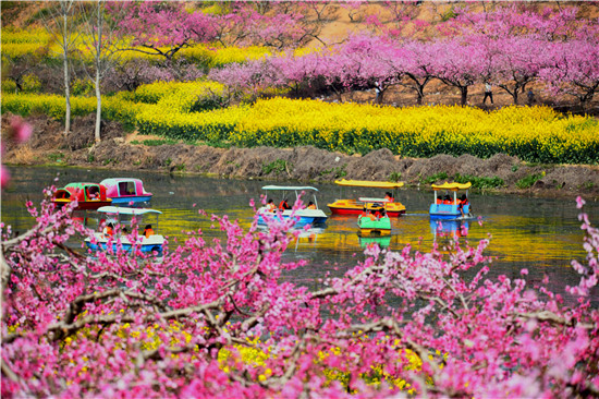 今年是黃橋迎來第十六屆桃花節(jié),鑒于疫情防控的需要,本屆桃花節(jié)不再聚眾舉辦,然而,燦爛如錦的黃橋,還是吸引著大批人們前來踏青賞花。3月24日,仲春的太陽火辣辣的,依然阻止不了人們前來觀賞桃花的好心情,游人如織,攜家?guī)Э冢襞笠?,漫游在桃花深處,桃花飛紅的潁河里,大人帶著孩子們踏著游船,暢游花海碧水之間,游船點點,讓人嘆為觀止。
