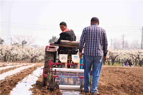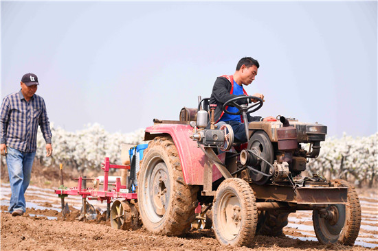 春光明媚,土壤濕潤,正是春耕春播的好時(shí)機(jī),農(nóng)民們給玉米、冬小麥、棉花等農(nóng)作物開播、澆水、施肥,為秋季豐收做好布局。近日,記者在黃泛區(qū)看到,農(nóng)民們種植玉米已經(jīng)實(shí)行機(jī)械化,下種、施肥、打藥、壓上薄膜,一次成型,減輕了勞作的壓力。