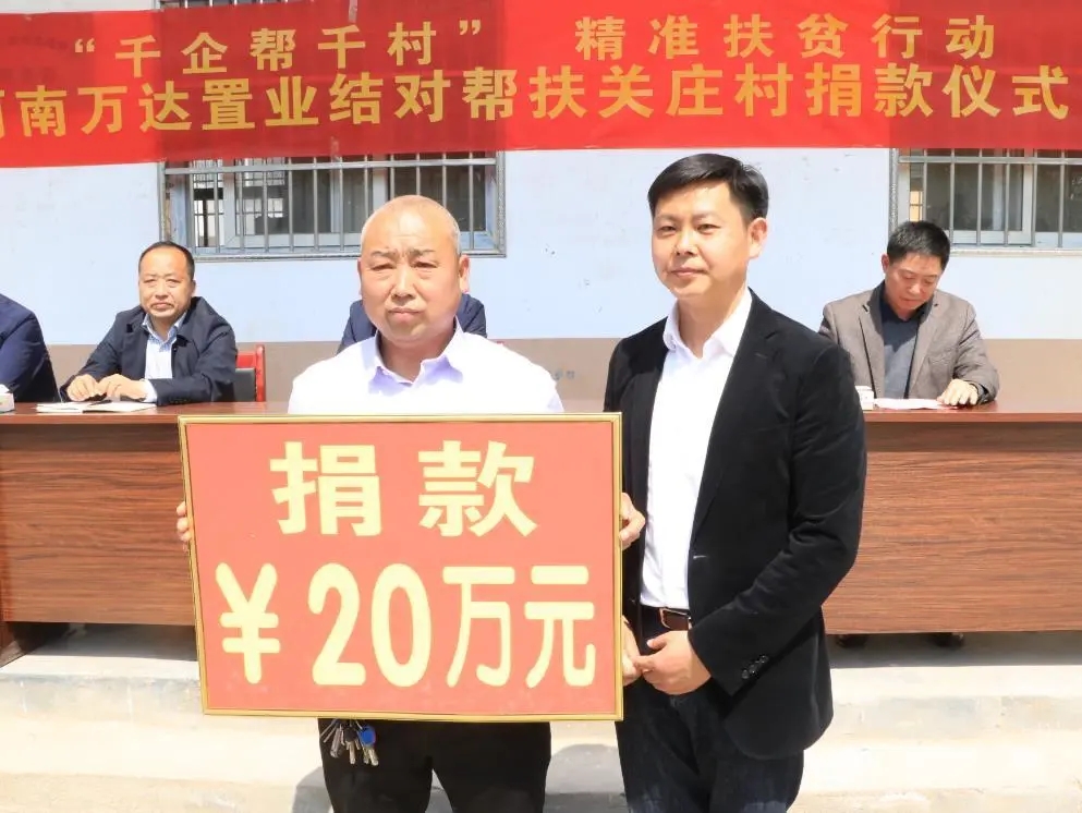 “非常感謝河南萬(wàn)達(dá)置業(yè)有限公司對(duì)我村的幫扶,這將極大促進(jìn)我村的脫貧攻堅(jiān)工作,相信在關(guān)莊村村民的共同努力和河南萬(wàn)達(dá)置業(yè)的結(jié)對(duì)幫扶下,我們村一定會(huì)早日脫貧致富奔小康?!瘪v村第一書記王玉華說(shuō)。