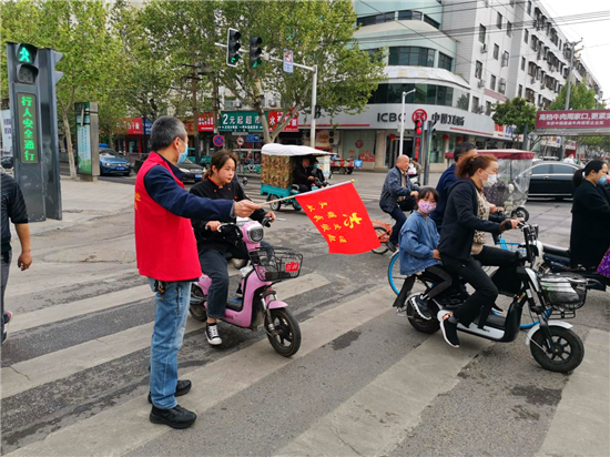 活動中,機關(guān)、社區(qū)十余名志愿者穿著紅馬甲,手持小紅旗到交通路與五一路、六一路交叉口開展文明交通勸導(dǎo)。志愿者們對部分市民闖紅燈、亂穿馬路、騎電動車打電話等不安全的交通行為進行勸阻,耐心引導(dǎo)行人和非機動車輛遵守交通規(guī)則,并協(xié)助交警維持十字路口交通秩序。