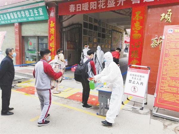 在周口十九中,記者看到,一大早,該校全體教職員工就已準備就緒,分別在校門口和教室內(nèi)等候初三學子的到來。據(jù)了解,復學首日,該校安排了60余名教師在校門口維持秩序,此時的他們既是安全員又是防疫員。