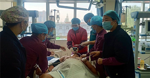 急救迅速展開。6時13分,急救車到達醫(yī)院急救中心。救援現(xiàn)場,有著豐富急救經(jīng)驗的董建洲醫(yī)生判斷患者為重度有機磷農(nóng)藥中毒且伴有呼吸衰竭癥狀。經(jīng)過一個多小時搶救,患者血壓出現(xiàn)平穩(wěn),但呼吸仍然困難,隨時有生命危險。