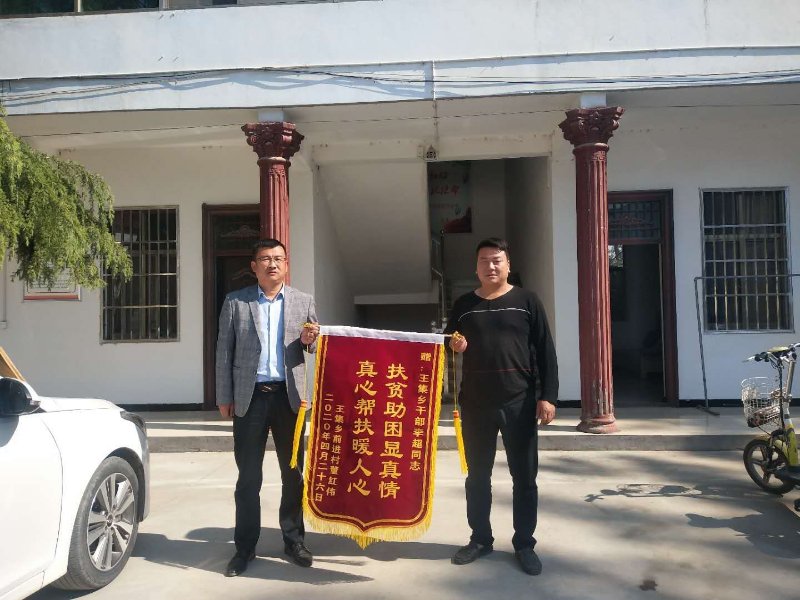 “扶貧助困顯真情,真心幫扶暖人心!”4月26日,太康縣王集鄉(xiāng)前進(jìn)村未脫貧戶董紅偉將這面錦旗送到幫扶人李超手中。“送上這面錦旗,終于了卻了我的一個(gè)心愿,真是非常感謝李超同志,不辭勞苦,多次到我家進(jìn)行幫扶,這不,又幫我介紹了一份工作,今年我脫貧沒(méi)任何問(wèn)題了!”董紅偉笑著說(shuō)。