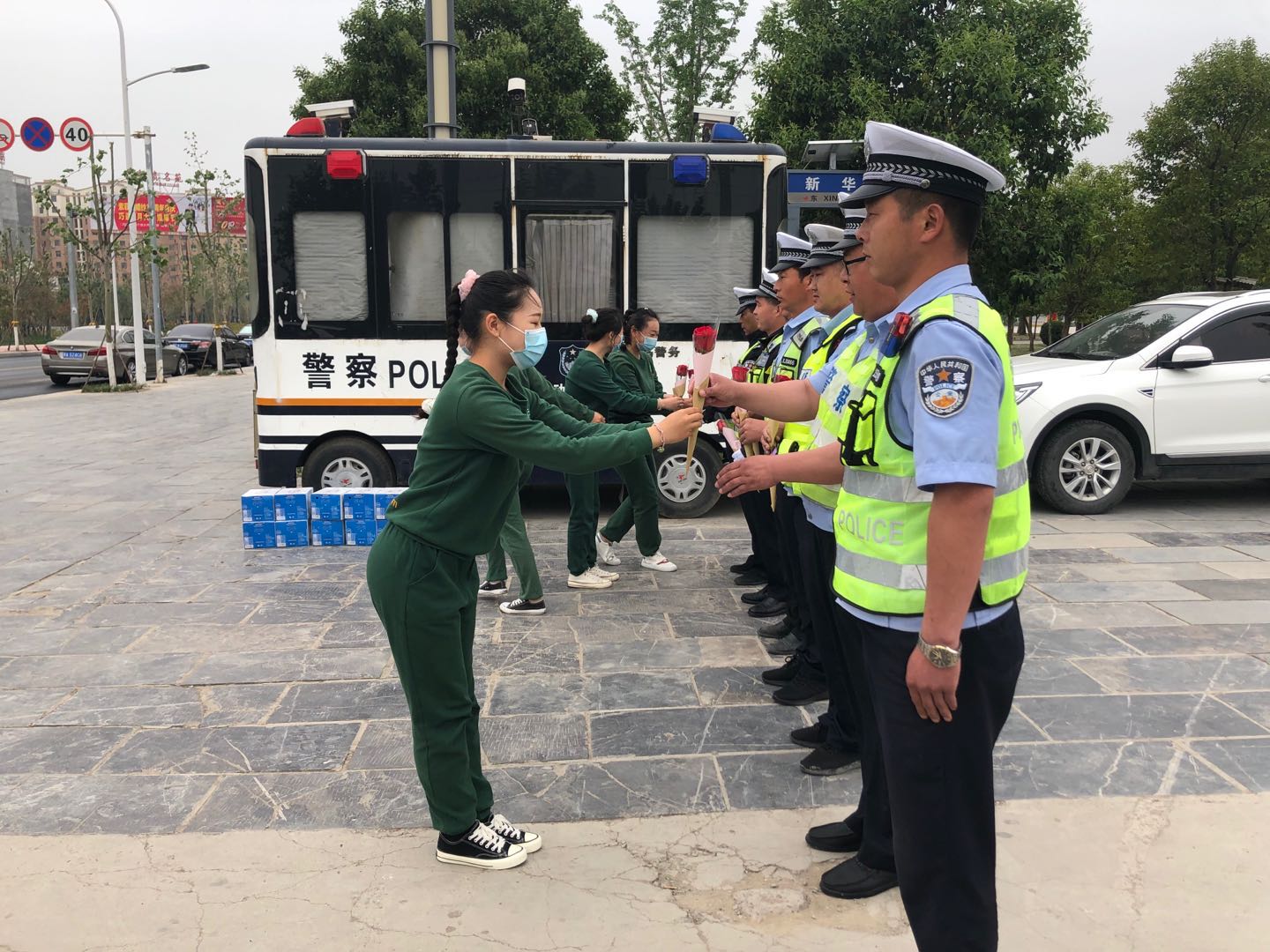 慰問期間,教師們?yōu)楦兄x鄲城交警辛勤的付出,為他們送上錦旗、鮮花和自編的舞蹈,充分表達(dá)對(duì)一線執(zhí)勤交警堅(jiān)守崗位、不辭勞苦、敬業(yè)奉獻(xiàn)精神的敬意。
