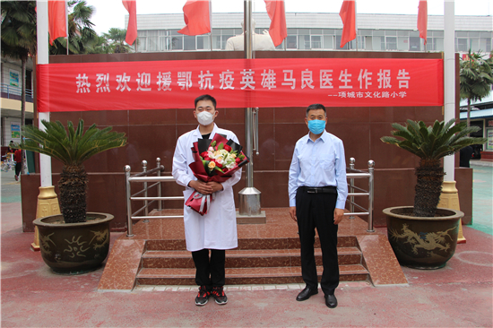 為彰顯榜樣力量,傳承抗“疫”精神,5月6日,項(xiàng)城市文化路小學(xué)邀請項(xiàng)城援鄂抗“疫”英雄代表項(xiàng)城市中醫(yī)院脾胃肝膽科護(hù)士馬良來校為廣大師生作報(bào)告,講述戰(zhàn)“疫”背后的故事,厚植愛國主義情懷。