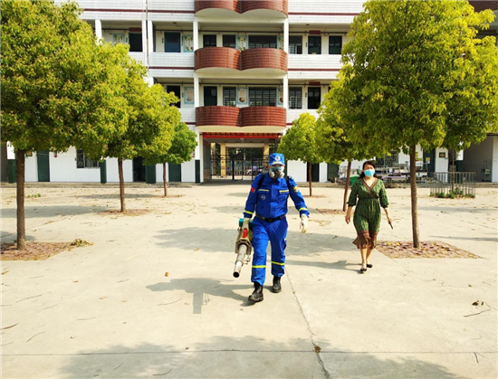 5月13日,我市中心城區(qū)低年級小學(xué)生將迎來返校復(fù)課。為保障孩子們身體健康,5月10日,周口市六一路小學(xué)再次邀請周口市藍天救援大隊工作人員對校園重點部位進行全面消毒殺菌,為低年級師生順利返校復(fù)課提供健康保障。(記者 黃佳 通訊員 劉芝 攝)
