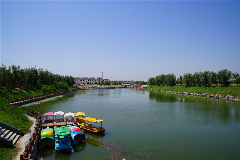 采風團記者走進鄲城縣秋渠鄉(xiāng)靳莊村,只見綠樹掩映著干凈整潔的道路,楊柳倒映在荷塘碧波……變化始于2019年5月份。秋渠鄉(xiāng)黨委書記梁輝說,靳莊村于去年5月份被列為鄲城縣“六村共建”試點村后,村里24個廢坑塘,有的被改造成湖泊,有的被墊平作為宅基地由村里拍賣,所得收入用于村里發(fā)展建設?!傲骞步ā本褪恰拔拿鞔濉薄捌桨泊濉薄靶l(wèi)生村”“產(chǎn)業(yè)富民村”“美麗宜居村”“黨建示范村”一體建設。