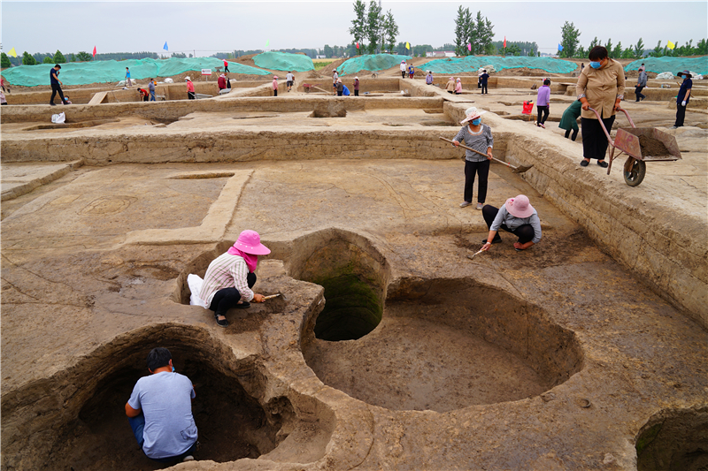 大家首先來到時莊遺址發(fā)掘現(xiàn)場。該遺址屬于龍山文化遺存,就現(xiàn)有發(fā)掘情況看,遺址規(guī)模宏大、結構獨特,在全國范圍也屬罕見,是近年來我國考古的重要發(fā)現(xiàn)。