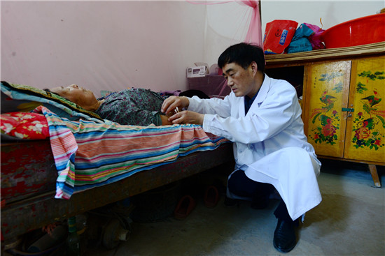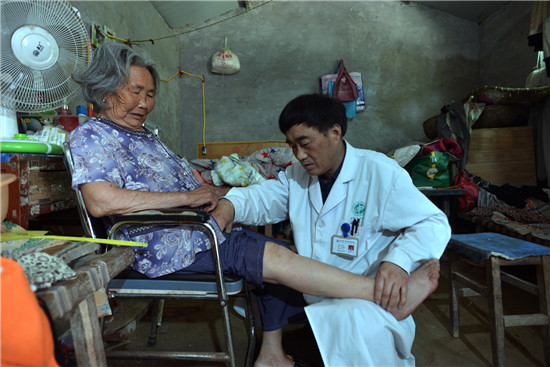 李樓鄉(xiāng)位張行政村72歲的貧困戶張振廷腦中風(fēng)多年,在大醫(yī)院治療一個(gè)月后,留有偏癱后遺癥臥床不起;李莊行政村80歲的貧困戶李體榮也是此癥,因無(wú)錢治療,二人均回家“等死”。柴萬(wàn)靈作為簽約家庭醫(yī)生,就在他們家中設(shè)立家庭病床,每周一、三、五到老張家,二、四、六到老李家,給他們采用中醫(yī)針灸、按摩,并為其煎服偏癱復(fù)原湯,兩位老人都是半年左右能拄拐下地。