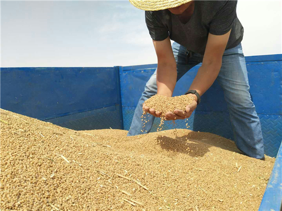 6月4日,商水縣高標(biāo)準(zhǔn)糧田示范區(qū)內(nèi),金燦燦的麥穗迎風(fēng)擺動,麥香四溢。種糧大戶邱守先站在自家承包的麥田邊,揉搓著收割機(jī)剛剛吐出的麥粒:“你瞅瞅,這小麥籽粒飽滿,品相多好!”然而,面對豐收景象,他卻連連說“后悔了......”。