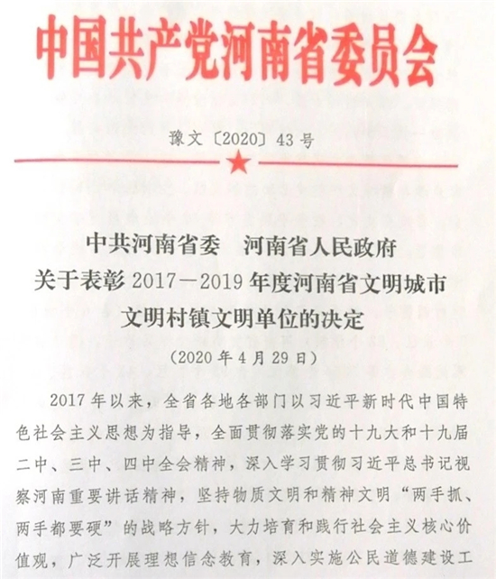 (1987年,該院首次被授予河南省文明單位稱(chēng)號(hào))