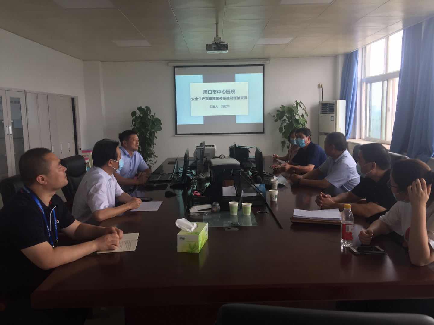 6月15日下午,扶溝縣人民醫(yī)院一行6人來到周口市中心醫(yī)院對安全生產(chǎn)雙重預(yù)防體系建設(shè)工作進(jìn)行參觀交流,市中心醫(yī)院副院長呂燕平、保衛(wèi)科科長劉獻(xiàn)華、醫(yī)聯(lián)部主任張小虎陪同。