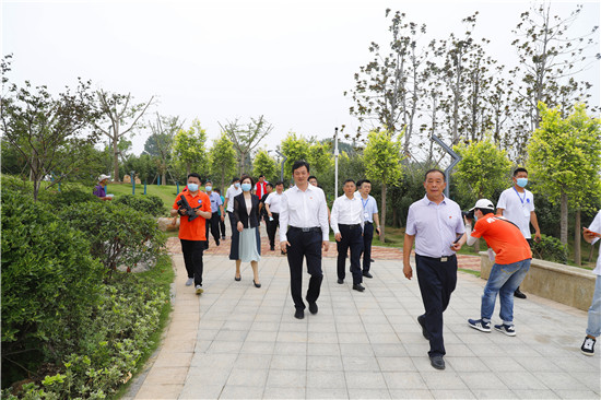 開園儀式結(jié)束后,與會領(lǐng)導在志愿者的引導下乘車沿公園步道對賈魯河生態(tài)濱河公園進行參觀游覽。
