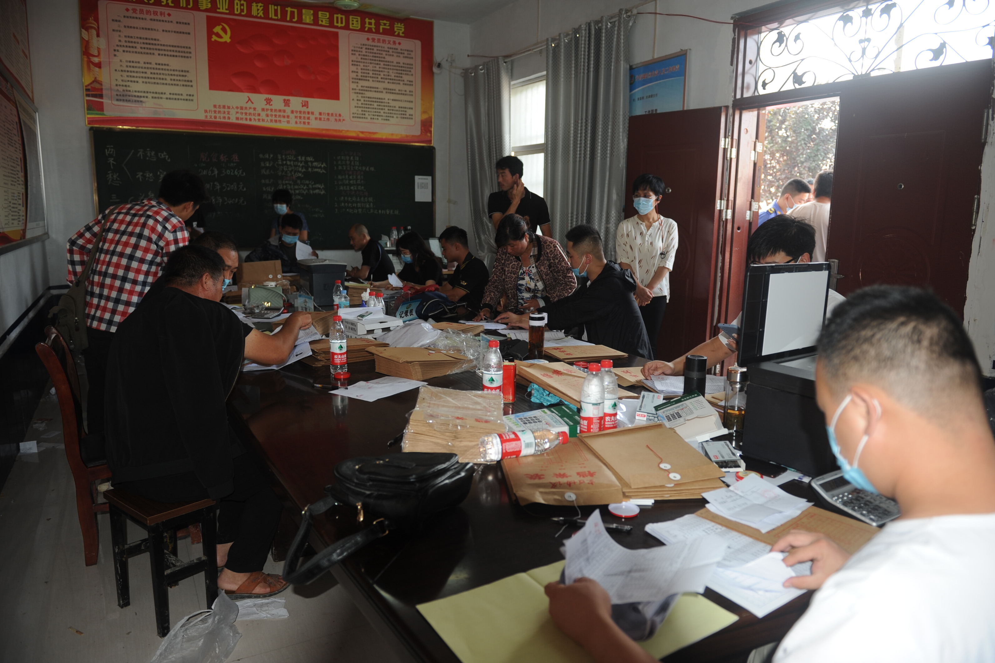 村室內,工作人員有的在忙著為群眾復印材料,有的在緊張地為群眾簽訂房屋拆除協(xié)議,大家都忙得不可開交。