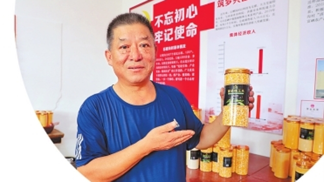 迎著朝陽(yáng),挎上背簍,戴好草帽,我來(lái)到后山的油茶林。看到一顆顆飽滿的油茶果掛滿枝頭,再走到精煉車間,看著一粒粒茶籽變成一滴滴金色的茶油,我心里分外踏實(shí)。