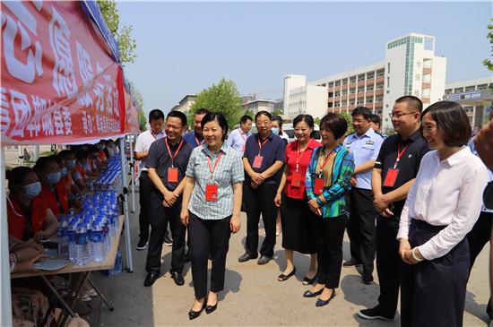 7月7日,全國高考進行時。鄲城縣為大力弘揚“奉獻、友愛、互助、進步”的志愿服務精神,由中共鄲城縣委宣傳部、共青團鄲城縣委聯(lián)合主辦,鄲城縣青年志愿者協(xié)會承辦,鄲城縣農信社獨家贊助的愛心助考志愿服務活動在全縣6個考點順利開展,身著紅馬甲的志愿者們成為服務高考的亮麗風景線。