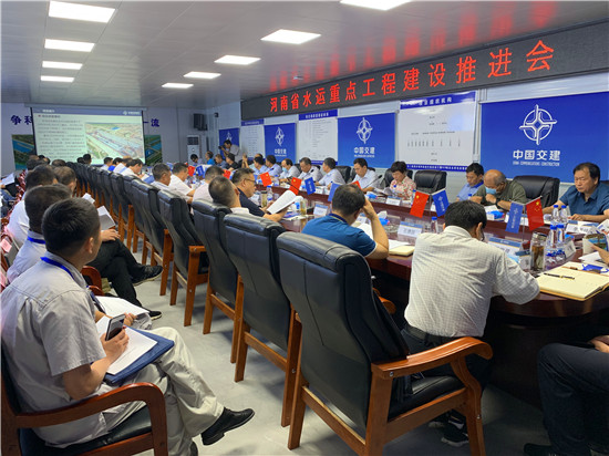 參觀結(jié)束后,與會人員在沈丘項目部會議室召開了全省水運重點工程復(fù)工復(fù)產(chǎn)推進會議。會議傳達了近期河南省有關(guān)安全、防汛、“六比一創(chuàng)”和節(jié)能減排競賽等各項工作部署以及全省交通運輸工作半年會議精神。