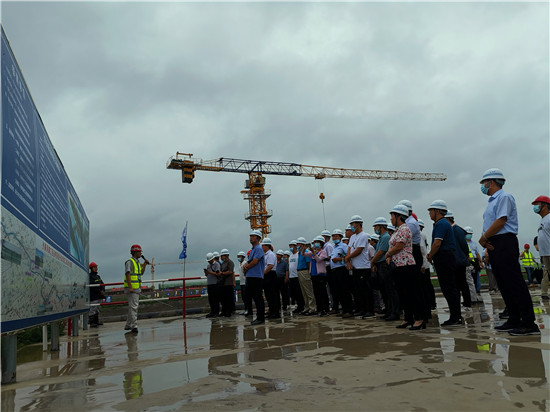 當(dāng)天雖然大雨滂沱,卻沒有擋住與會人員的腳步。冒著大雨,參會人員對中交二航局沙潁河航道升級改造項目沈丘航運樞紐建設(shè)現(xiàn)場的船閘、節(jié)制閘、鋼筋加工配送中心、工地試驗室、安全體驗館和智慧工地管理系統(tǒng)進行了參觀,觀摩學(xué)習(xí)了沙潁河項目在安全環(huán)保管理、現(xiàn)場管理、質(zhì)量管理、試驗室建設(shè)等方面標(biāo)準化建設(shè)的成果。沙潁河項目的建設(shè)發(fā)展在全省水運工程行列做到了高標(biāo)準建設(shè)、創(chuàng)品牌發(fā)展。