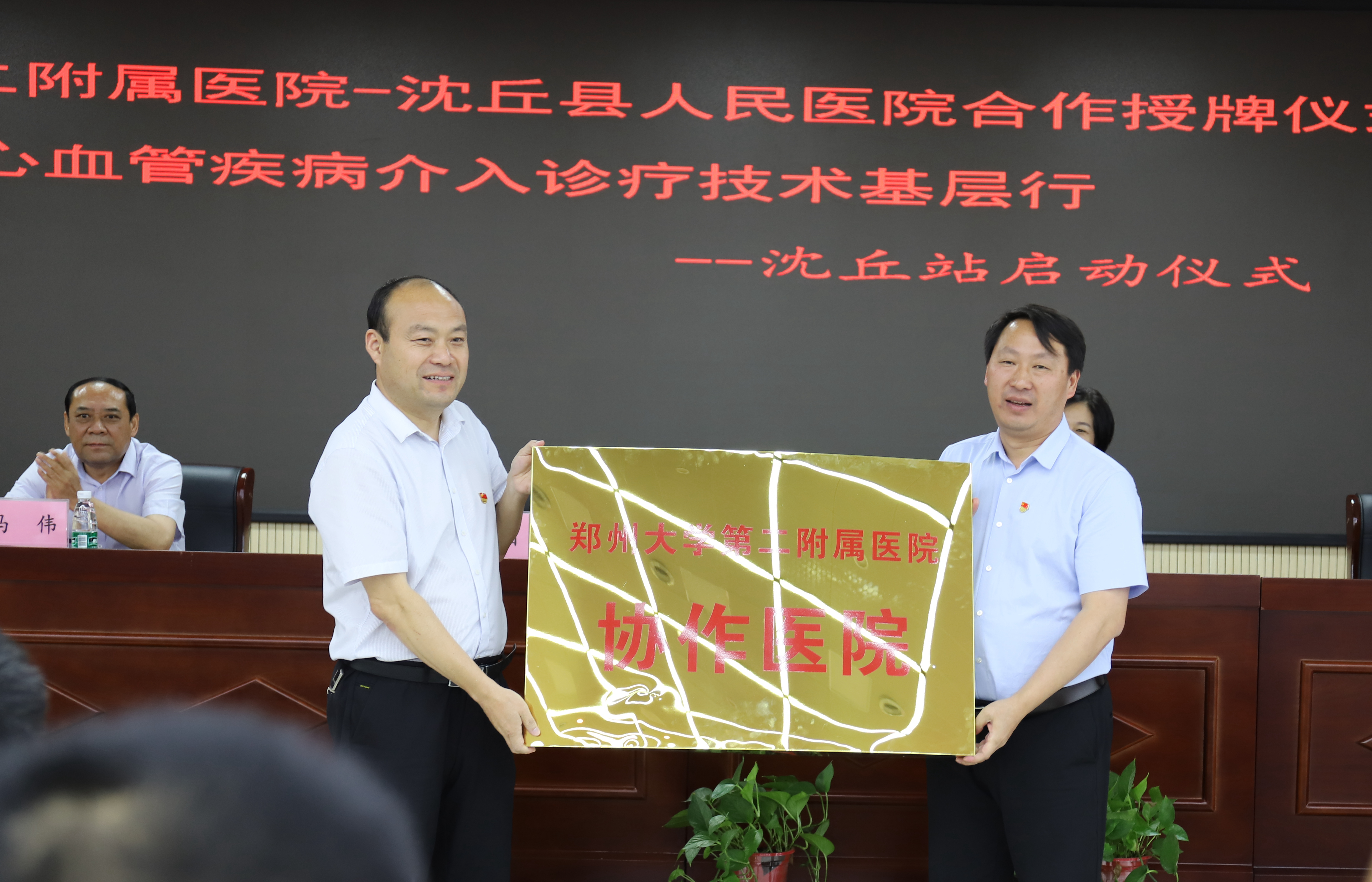 隨后,鄭大二附院副院長簡立國為沈丘縣人民醫(yī)院授協(xié)作醫(yī)院牌。沈丘縣人民醫(yī)院院黨委書記歐陽劍為鄭大二附院的簡立國院長及心血管內(nèi)科各位教授專家頒發(fā)特聘專家證書。沈丘縣衛(wèi)健委張治君在總結(jié)講話中指出,縣醫(yī)院與鄭州大學(xué)第二附屬醫(yī)院建立友好協(xié)作關(guān)系,不僅對縣醫(yī)院是個很好的發(fā)展機(jī)遇,也是該縣醫(yī)療衛(wèi)生工作走大靠強(qiáng)道路的具體體現(xiàn),是醫(yī)療衛(wèi)生戰(zhàn)線上的一件大喜事,對加快醫(yī)療衛(wèi)生事業(yè)發(fā)展,有效的解決廣大人民群眾看病貴、就醫(yī)難的問題,將起到積極的推動作用。希望鄭州大學(xué)第二附屬醫(yī)院的領(lǐng)導(dǎo)和專家們常來指導(dǎo),兩家醫(yī)院能夠友好協(xié)作,共同發(fā)展。