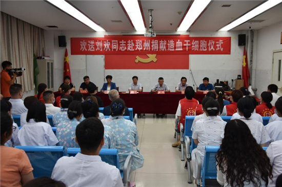 “作為一名醫(yī)務(wù)人員,能為患者帶來(lái)生的希望,無(wú)論如何我都不會(huì)拒絕。希望捐獻(xiàn)后那位患者能早日康復(fù),投入新生活……” 7月22日上午,在西華縣中醫(yī)院會(huì)議室舉行的劉歡同志赴鄭州捐獻(xiàn)造血干細(xì)胞歡送儀式上,這位來(lái)自該院骨科護(hù)士長(zhǎng)的一番話贏得現(xiàn)場(chǎng)陣陣掌聲。市紅十字會(huì)常務(wù)副會(huì)長(zhǎng)毛立營(yíng),市紅十字會(huì)秘書(shū)長(zhǎng)高春,西華縣委副書(shū)記郭峰,西華縣人民政府副縣長(zhǎng)、紅十字會(huì)會(huì)長(zhǎng)張翠霞,西華縣衛(wèi)健委副主任胡濤,西華縣中醫(yī)院院長(zhǎng)高彥博等出席歡送儀式。
