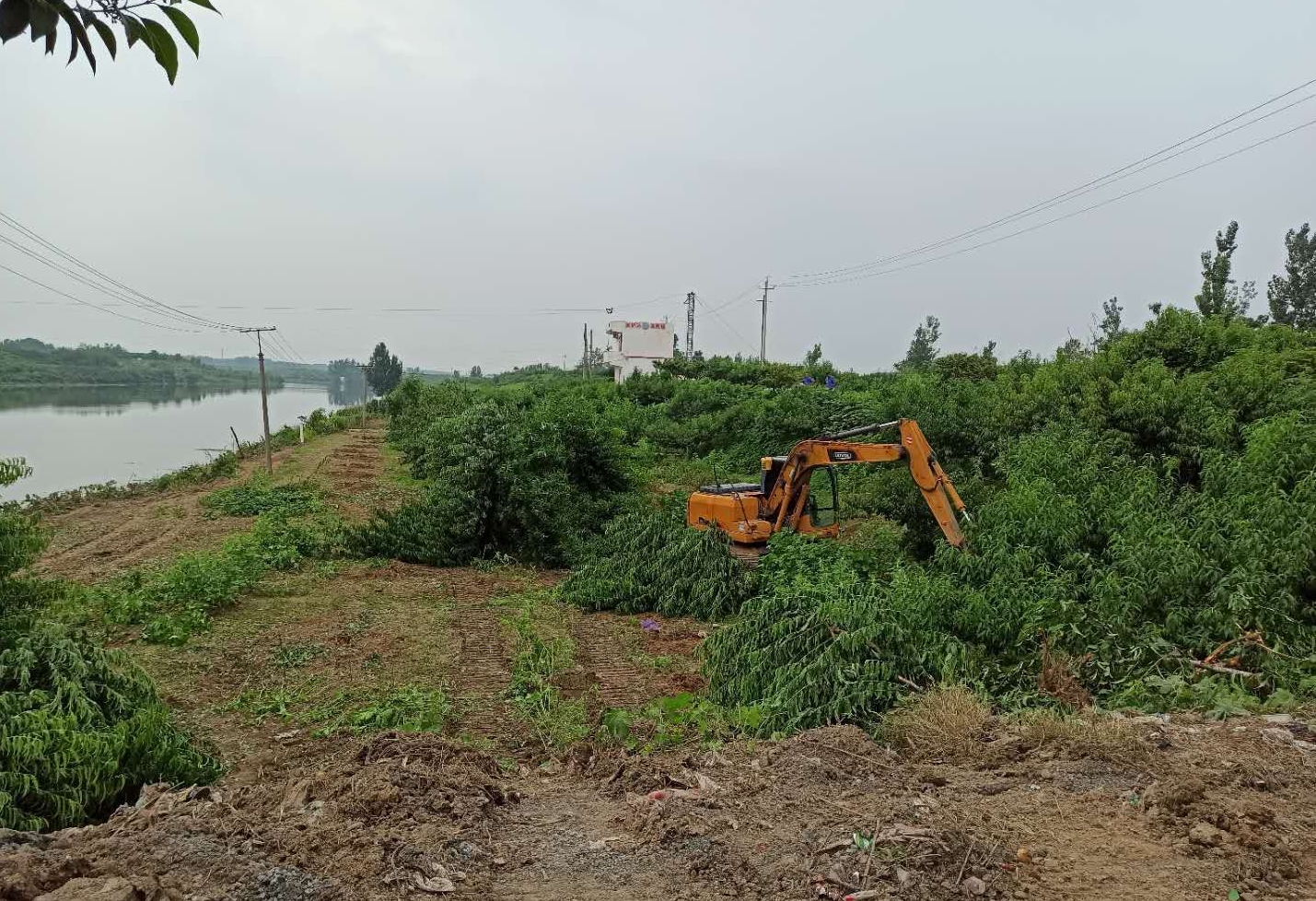 同時,該縣以《水法》《防洪法》《河道管理條例》等法律法規(guī),以及中共中央辦公廳、國務(wù)院辦公廳《關(guān)于全面推行河長制的意見》《河南省全面推行河長制工作方案》《河南省總河長令(第2號)》《河南省持續(xù)開展河湖“清四亂”行動方案》等重要文件為依據(jù),對河道管理范圍內(nèi)“四亂”問題進行依法清理整治。潁河黃橋閘上下游灘地存在阻水林木,屬“亂占”行為。黃橋鄉(xiāng)政府與河道管理部門實地查看,制定清理方案,劃出清理范圍線,按照潁河防洪要求和管理實際情況,對潁河保證水位線以下高桿作物,樹木全部清理,確保防洪安全。目前,按照清理范圍,潁河黃橋管理段日出動挖掘機械四臺,已清理桃樹170棵、楊樹40棵、梧桐樹110棵、雜樹7畝,清理河道長1200米。