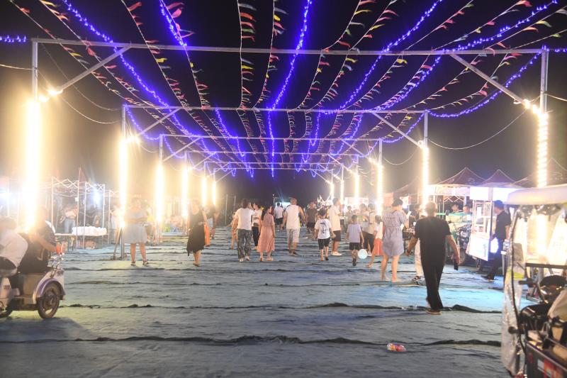 該夜市場(chǎng)地由商水縣水韻章華文商旅項(xiàng)目提供,占地近百畝,設(shè)有100多個(gè)攤位,經(jīng)營(yíng)范圍包括吃喝玩樂(lè)娛、服裝百貨等,每天晚上6點(diǎn)多營(yíng)業(yè),11點(diǎn)收攤,周末客流高峰時(shí)游客有3000多人,其中不少來(lái)自周口中心城區(qū)。
