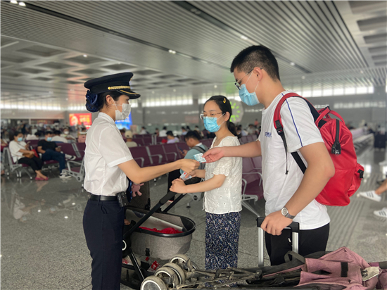 據(jù)了解,周口東站結合客流情況優(yōu)化客流疏導舉措,在進站口、檢票口、站臺關鍵位置加派黨員先鋒隊和團員先鋒隊保障、強化現(xiàn)場指引,確保客運進站安全、有序、可控。針對暑期高溫多雨天氣,服務臺實時監(jiān)測站內溫度,在做好節(jié)支降耗的同時切實保證乘客候乘環(huán)境。車站增設“暑運愛心便民箱”,為乘客提供防暑降溫用品、口罩、藥箱等便民物品。同時,為老弱病幼殘等重點旅客提供“愛心卡”,為行動不便或行李較多、帶兒童較多的乘客提供貼心幫助。