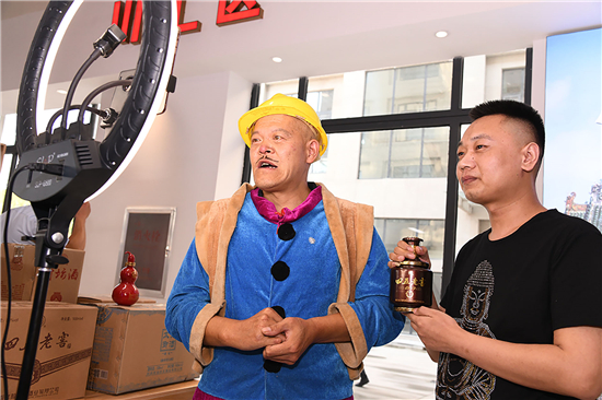 記者看到,川匯區(qū)直播電商產(chǎn)業(yè)基地直播大廳內(nèi),全市各個縣市區(qū)都在此設(shè)有土特產(chǎn)直播區(qū),川匯區(qū)賣的有伏羲貢酒等,淮陽區(qū)賣的泥泥狗、布老虎、黃花菜、健身器具等,西華縣賣的有胡辣湯料等各種土特產(chǎn)。商家們“八仙過海,各顯神通”紛紛請來各路網(wǎng)紅大咖們助力直播。川匯區(qū)四五酒業(yè)請來“光頭強”熱賣四五老酒,西華縣的商家請來“趙本山”帶貨直播叫賣。