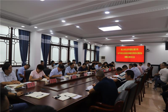 會(huì)上觀(guān)看了警示教育片《莫伸手,伸手必被捉》,宣讀了《周口市生態(tài)環(huán)境局太康分局開(kāi)展以案促改專(zhuān)項(xiàng)行動(dòng)方案》;對(duì)原項(xiàng)城市人大副主任崔世領(lǐng)等5起違紀(jì)違法案例進(jìn)行了深刻剖析;局黨組代表和中層干部代表作了大會(huì)發(fā)言。