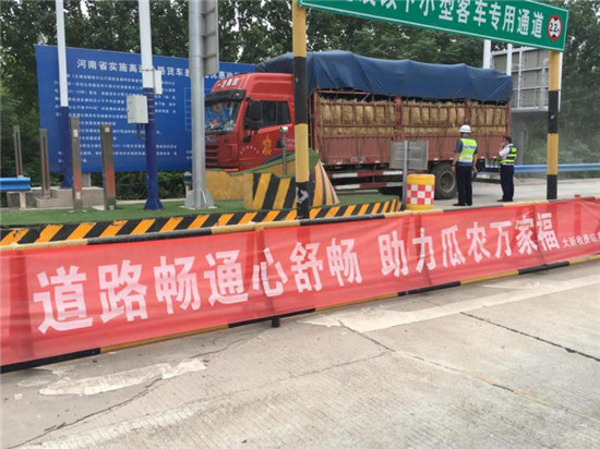 眼下正是瓜果集中上市的季節(jié),為幫助農(nóng)民銷售富有地方品牌特色的優(yōu)質(zhì)西瓜,促進(jìn)當(dāng)?shù)匚鞴辖?jīng)濟(jì)的發(fā)展,扶溝縣大新收費(fèi)站全員出動(dòng)保暢通,為全國(guó)各地拉瓜商販提供便捷服務(wù),為當(dāng)?shù)爻隹诮?jīng)濟(jì)的發(fā)展貢獻(xiàn)一份力量。