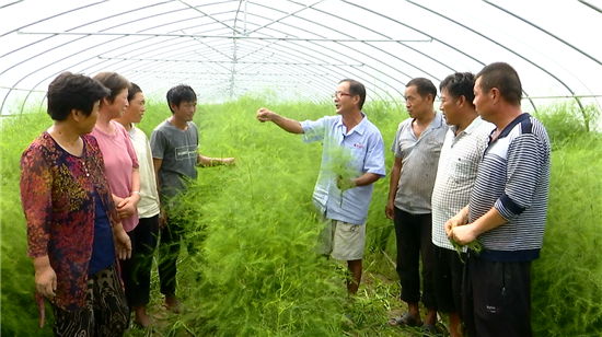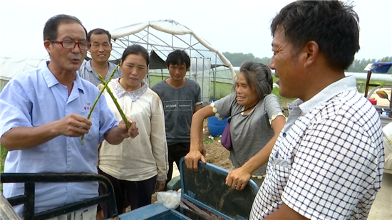 當(dāng)天,一場技術(shù)講座正在如期舉行,當(dāng)?shù)赜忻奶J筍種植“土專家”程殿明說:“咱這蘆筍種植,要以噴灑生物藥為主,在有機(jī)種植上,千萬不能用有機(jī)磷類的。大棚要想多掙錢,眼下管理是關(guān)鍵,長勢好了,進(jìn)入冬季,一個(gè)棚采摘就能掙三到五千塊錢。”