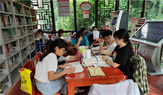 自進(jìn)入暑假以來(lái),市圖書館接待人數(shù)居高不下,其中學(xué)生居多。不少學(xué)生來(lái)此學(xué)習(xí)、寫暑假作業(yè),他們感到圖書館環(huán)境靜謐,有學(xué)習(xí)氛圍。在市區(qū)的各個(gè)智慧圖書館內(nèi)有時(shí)還會(huì)出現(xiàn)了“一座難求”的現(xiàn)象。但大家都自覺(jué)遵守圖書館的紀(jì)律,沒(méi)有一絲噪音。