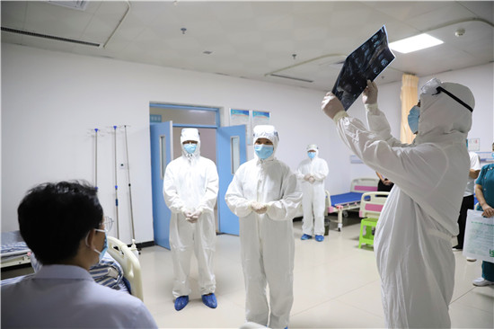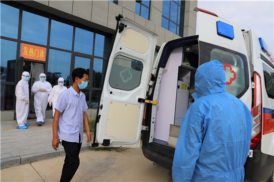 演練中,一名中年男子駕車(chē)到港區(qū)醫(yī)院就診,患者自述一周來(lái)在外地居住,無(wú)發(fā)熱癥狀,近一天來(lái)有氣促,活動(dòng)后胸悶、氣促加重,偶有咳嗽。經(jīng)急診科醫(yī)生多次詳細(xì)詢(xún)問(wèn)流行病學(xué)史,發(fā)現(xiàn)患者有隱瞞病史嫌疑(一周前同室居住工友,23日已確診為新冠患者),確定該病員為可疑新冠病毒肺炎患者。立即電話通知科主任及醫(yī)療救治專(zhuān)家組成員會(huì)診,根據(jù)患者主訴和臨床表現(xiàn),專(zhuān)家組分析高度懷疑病人為可疑感染新冠病毒病員。立即轉(zhuǎn)運(yùn)至隔離留觀室,并通知傳染病管理小組將疫情上報(bào)至市疾病預(yù)防控制中心,并協(xié)助對(duì)該病員進(jìn)行流行病學(xué)調(diào)查、轉(zhuǎn)運(yùn)及指導(dǎo)消毒、滅菌等工作。經(jīng)市級(jí)專(zhuān)家會(huì)診后,符合疑似病例,按照區(qū)防控指揮部規(guī)定,采用負(fù)壓轉(zhuǎn)運(yùn)車(chē)轉(zhuǎn)運(yùn)定點(diǎn)醫(yī)院治療。