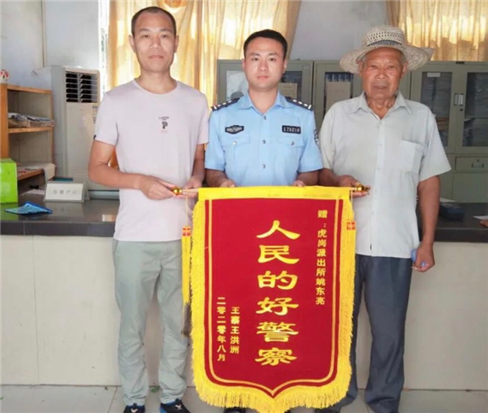 “沒想到,真沒想到,我這輩子還能與兒子相見,太感謝你了。”昨日,鄲城縣虎崗鄉(xiāng)派出所戶籍室門口鞭炮齊鳴,該鄉(xiāng)王寨行政村75歲的貧困戶王洪周和兒子王鐵練及親屬向戶籍民警姚東亮送上錦旗后,感激之情溢于言表。