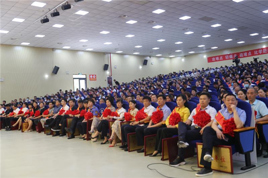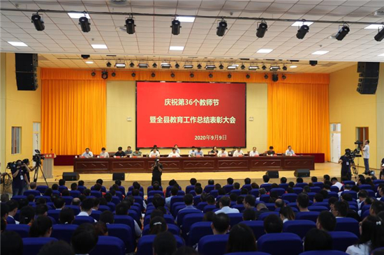 全縣各鄉(xiāng)鎮(zhèn)黨委書記和主抓教育副鄉(xiāng)鎮(zhèn)長(zhǎng),縣直各單位主要負(fù)責(zé)人,教體局班子成員及各股室負(fù)責(zé)人,各鄉(xiāng)鎮(zhèn)中心校校長(zhǎng)、局直學(xué)校校長(zhǎng),中小學(xué)校長(zhǎng)代表,優(yōu)秀教師代表、學(xué)生代表等1100人共同慶祝第36個(gè)教師節(jié)暨全縣教育工作總結(jié)表彰大會(huì)。