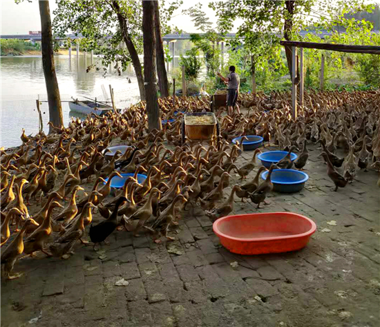 為了擴大變蛋原料來源,她與當(dāng)?shù)丶巴獾囟嗉茵B(yǎng)雞企業(yè)簽訂訂單協(xié)議,滿足自己加工變蛋需要。為了滿足鴨蛋貨源,她在潁河灣一個支流處新建一個養(yǎng)鴨基地,目前養(yǎng)鴨5000余只,日產(chǎn)鴨蛋5000枚,基本滿足當(dāng)前加工咸鴨蛋需要。
