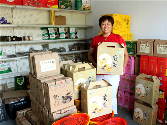 幾年前,孔粉蓮曾干過建材生意,賣過油漆、涂料等,但最讓她得心應(yīng)手的還是經(jīng)營當(dāng)?shù)氐霓r(nóng)特產(chǎn)品。她在村里開了一家小門店,代銷當(dāng)?shù)氐暮睖稀⑹ッ?、食用菌、紅薯粉條等,顧客贏門,生意很是紅火。