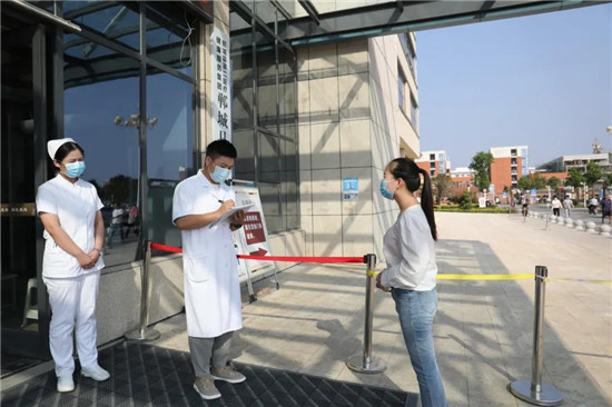 “您好,您哪兒不舒服???近期去過疫區(qū)嗎?”鄲城縣第二醫(yī)療健康服務集團鄲城縣中醫(yī)院門診樓前預檢分診入口處,分診護士正仔細詢問一名就診患者?!拔矣悬c發(fā)燒、咳嗽,10天前從某省回來?!狈衷\護士經(jīng)詳細詢問其流行病學史,在做好登記后,護士為患者更換醫(yī)用外科口罩,并引導患者到發(fā)熱門診......這是9月8日下午,在鄲城縣第二醫(yī)療健康服務集團鄲城縣中醫(yī)院開展的秋冬季新冠肺炎疫情防控應急演練的一幕。