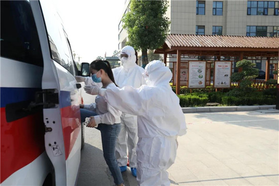 16:20,醫(yī)院急診負壓救護車和急救人員到發(fā)熱門診就位,急救中心司機邱華杰、護士歐寧寧、醫(yī)生劉洋將疑似患者轉運到救護車上,護送病人轉運至縣人民醫(yī)院。
