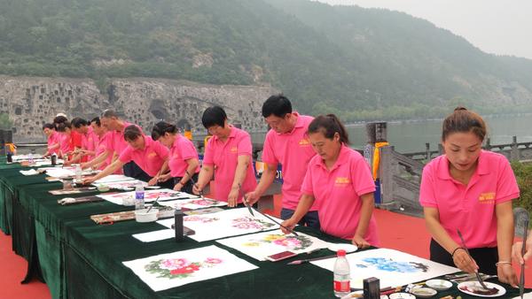 受郭泰森影響,村里不少農(nóng)民也想學習畫牡丹,在當?shù)卣闹С趾蛶椭?,郭泰森舉辦了牡丹畫免費培訓班、畫師培訓班,參加培訓的學員場場爆滿。如今,平樂鎮(zhèn)牡丹畫師已發(fā)展到1000余名,形成了包括培訓創(chuàng)作、裱畫包裝、推介營銷、研學旅行等相對完整的產(chǎn)業(yè)鏈,帶動相關從業(yè)人員5000余人。