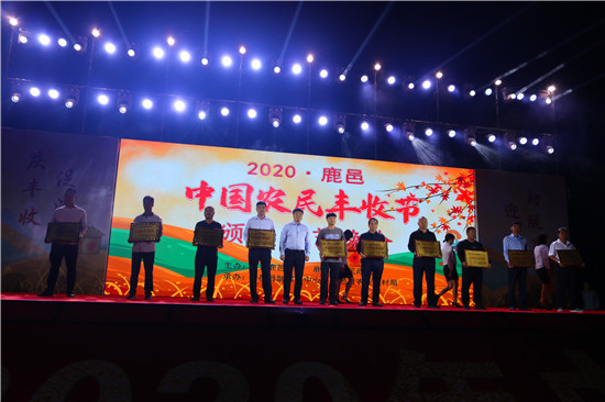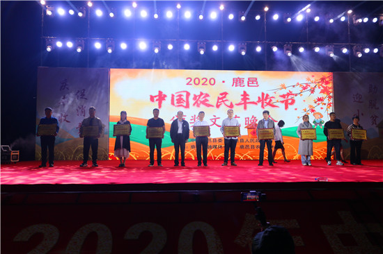 9月22日晚,由中共鹿邑縣委、鹿邑縣人民政府主辦的2020年鹿邑縣農(nóng)民豐收節(jié)文藝晚會在鹿邑縣文化中心廣場舉辦。晚會現(xiàn)場頒布了鹿邑縣“十佳家庭農(nóng)場”“十佳農(nóng)民合作社”“十佳特色農(nóng)產(chǎn)品品牌”“十佳返鄉(xiāng)創(chuàng)業(yè)脫貧致富帶頭人”“十佳脫貧致富先進(jìn)個(gè)人”五項(xiàng)獎(jiǎng)項(xiàng),40名新型農(nóng)民(農(nóng)場、合作社)代表和10個(gè)特色農(nóng)產(chǎn)品品牌獲殊榮,他們用行動和產(chǎn)品充分展示了全縣現(xiàn)代農(nóng)業(yè)在過去一年中取得的輝煌成果??h領(lǐng)導(dǎo)雷申、楊所超、侯自峰、王曉征、張國慶、肖西國等出席豐收節(jié)晚會,并為獲獎(jiǎng)?wù)哳C發(fā)榮譽(yù)證書和獎(jiǎng)牌。