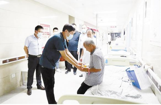 “雙節(jié)”當(dāng)天,鄲城縣第二醫(yī)健集團(tuán)縣中醫(yī)院院長水新華,副院長史昊、仵好金、崔冬一行分別到臨床、醫(yī)技等科室慰問節(jié)日值班人員和住院患者,轉(zhuǎn)達(dá)了鄲城縣衛(wèi)健委黨組書記、主任付登霄對大家的節(jié)日祝福,并向“援鄂英雄”胡奔奔送去節(jié)日慰問,向住院患者送去月餅和祝福。記者 徐松 通訊員 張洋 攝