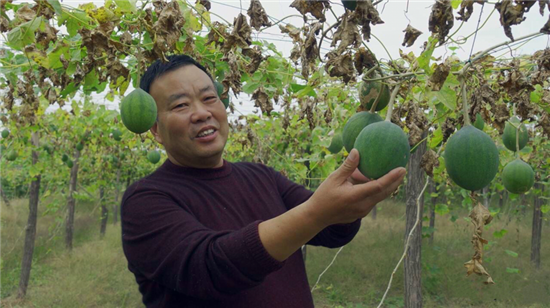 “瓜蔞,又叫吊瓜、野葫蘆,多年生藤本植物,塊根圓柱狀,富含淀粉。它渾身是寶,果子能入藥,也能加工食用?!苯眨卩惓强h寧平鎮(zhèn)瓜簍種植基地,寧平鎮(zhèn)黨委書記徐汝敏看著滿眼豐收景象的瓜簍,臉上滿是笑容。