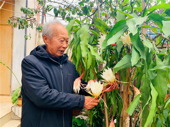 在周口市中心城區(qū)的一個(gè)家屬院里,記者見(jiàn)到了88歲的苗天才和他養(yǎng)的曇花,“一株21年樹(shù)齡的曇花開(kāi)了43朵,另外兩株5年樹(shù)齡的曇花加起來(lái)開(kāi)了13朵,這3株曇花一共開(kāi)了56朵?!泵缣觳耪f(shuō),早上四五點(diǎn)的時(shí)候曇花就慢慢地開(kāi)放了,到現(xiàn)在五六個(gè)小時(shí)過(guò)去了曇花還保持著開(kāi)放狀態(tài)。