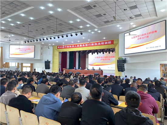 10月19日,商水縣召開行政執(zhí)法人員服務型執(zhí)法培訓會??h委常委、政法委書記、縣政府黨組成員王勇,市司法局黨組成員、副局長鄭啟新,市司法局依法行政指導科科長楊玉芹出席培訓會??h司法局黨組書記、局長王洪輝主持會議。