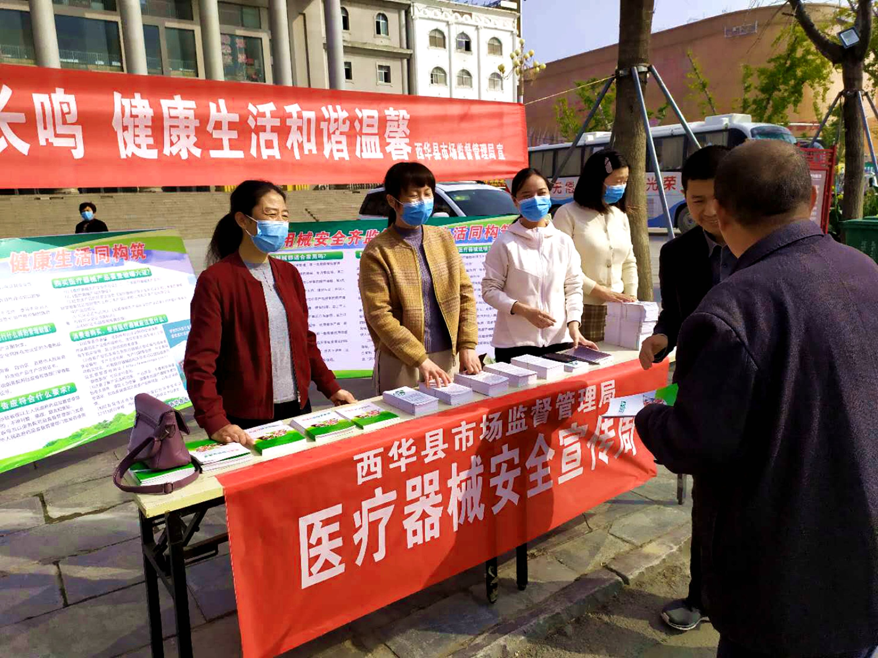 當(dāng)日,西華縣市場(chǎng)監(jiān)管局在縣城女?huà)z廣場(chǎng)開(kāi)展醫(yī)療器械安全宣傳周活動(dòng)。工作人員一大早就來(lái)到宣傳活動(dòng)現(xiàn)場(chǎng),掛條幅、擺桌子、設(shè)展板,忙得不亦樂(lè)乎。