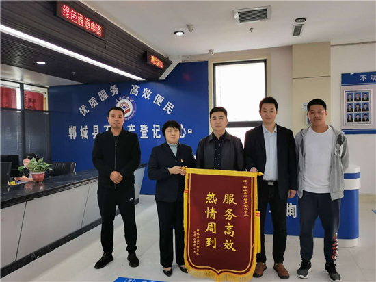 一面錦旗代表著一份感謝、一份肯定,鄲城縣不動產(chǎn)登記中心將把鼓勵(lì)化作動力,繼續(xù)秉承便民、高效的服務(wù)宗旨,不斷創(chuàng)新服務(wù)理念、優(yōu)化辦事流程、提高工作效率,努力將登記中心打造成政府放心、群眾滿意的服務(wù)部門。③5